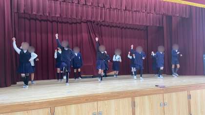 お昼休みに講堂で、ダンスクラブの発表会がありました。日頃の練習の成果を見せる日です。キレッキレのダンスに、応援に来た人たちも、びっくり。