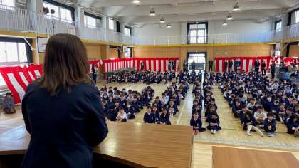 校長先生からこの1年間の成長をほめていただきました。1年間見守ってくださったお家の人に感謝の気持ちを忘れないでねと話していただきました。