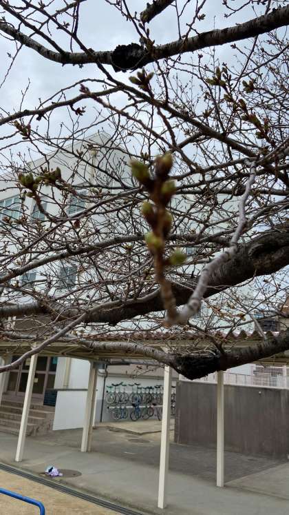 学校で一番大きな桜の木の様子です。あともう少し・・・。