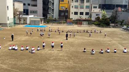 3年生が、運動場で「20mシャトルラン」をしていますよ。自分の限界突破を目指して、がんばれ、がんばれ。