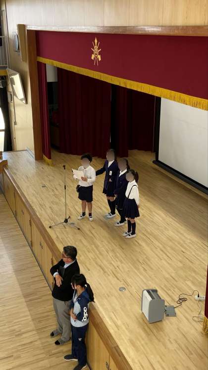 集会委員会さんが「先生クイズ」をしてくれました。先生の好きなキャラや、出身地、好きなマンガなどがわかって、とてもおもしろかったです。