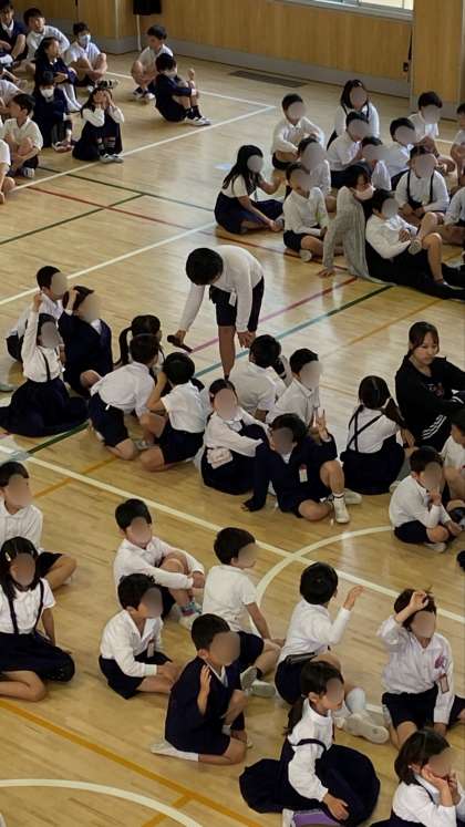 今日は、各学級で並んだのですが、来週には、「なかよし班」が発足しているので、来週から、なかよし班で整列するはずです!