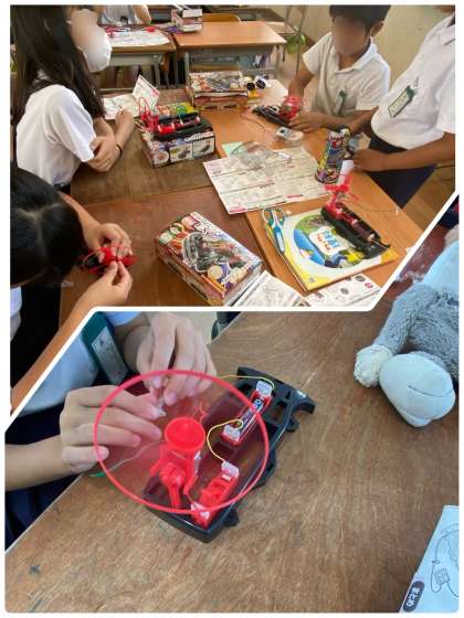 電池の向きを変えると・・・・あっ!プロペラが逆向きに回ったぞ!!