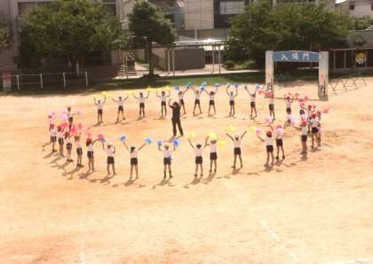 今日は、4年生と2年生の練習風景をお届けします。管理作業員さんが入退場門を据え付けてくださり、児童会でスローガンも作成し、どんどん練習に熱が入ってきました。14日の本番が楽しみですね。