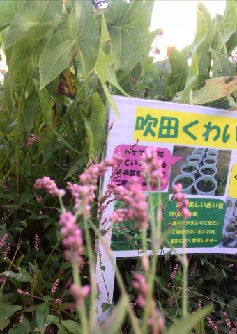 トマトやひまわりなど、夏の収穫を終えた学習園に、ピンク色のかわいい野草がたくさん咲いています。吹田くわいの葉が枯れてきた水田にも、このかわいいピンク色の花が咲いていますよ。これは、たでの花です。運動会の練習のあいまに、そっとのぞいてみてくださいね。