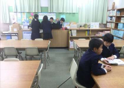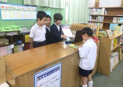 図書委員会の児童が、休み時間に交代で図書館解放をして、みんなが本に親しめるようにがんばっています。