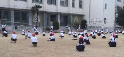 運動委員会が「うしろ返しとび」の模範をみんなに見せて、全員でチャレンジしました。2重とびは、20回以上も飛べる人がたくさんいました。寒さに負けずにがんばりましょう!
