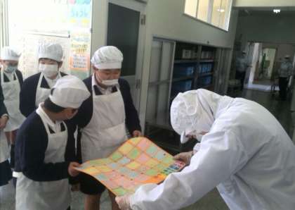 給食週間の取り組みで、調理員さんに感謝の寄せ書きが次々届いています。かわいいメッセージに、調理員さん,たちもにっこり。いただいたメッセージは、土曜参観のときに、各学年の近くの廊下に掲示しますので、ご覧ください。