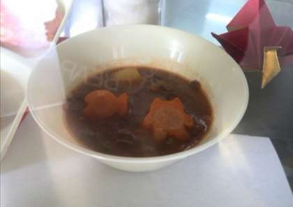 今月はほとんど毎日、ラッキーにんじんがありました。お正月の松竹梅、チューリップや桜、くま、犬、魚、月や星、かぼちゃなどなんと15種類以上のラッキーにんじんの型があります。今日は魚とくまの形でした。次は何の形でしょうね。お楽しみに!