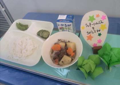 今月も10回以上のラッキーにんじんの日がありました。めずらしい「はりねずみ」の形もありましたよ。気づいた人はいましたか。6月のメニューもお楽しみに!