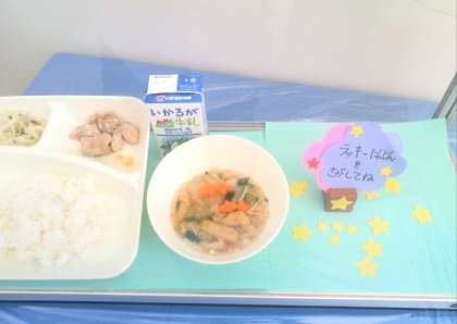 明日は、牛丼と旬の「とうがん」のみそ汁が出ます。旬の味を味わって食べましょう!