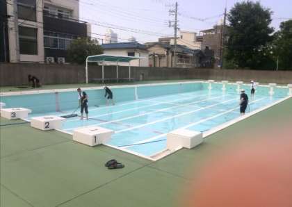 各学年の着衣水泳が終わり、夏休みのプール指導に備えて、担任外の先生方でプールをきれいにしました。学校では、薬剤師の先生による水質検査を行い、基準の水質を保つようにシーズン中何度も水替えを行っています。病気の蔓延を防ぎ、きれいな水で気持ち良くプール指導ができるように配慮がなされています。