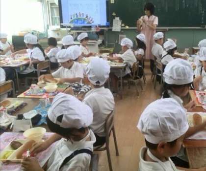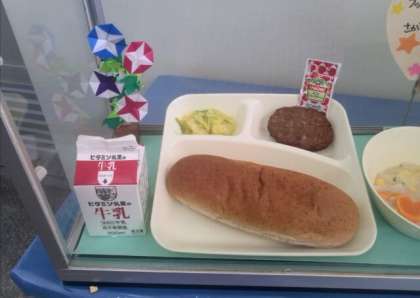 昨日、始業式があり、今日から給食がはじまりました。さっそくハートや魚の形のラッキーにんじんが「豆乳コーンスープ」に入って、牛乳アレルギーの児童も楽しみながら食べることができました。牛乳パックの形が変わったので、担任教諭から飲み方の説明がありました。まだ暑い日が続きますが、しっかり食べてじょうぶな体をつくりましょう。