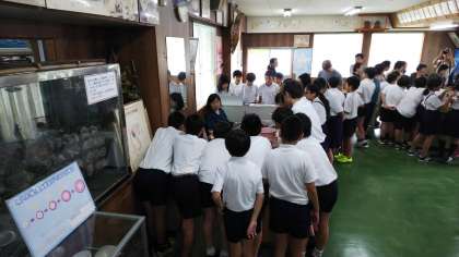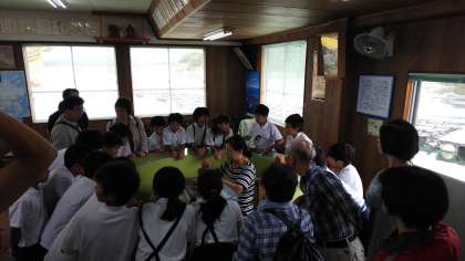 真珠の養殖について見学しています。