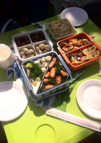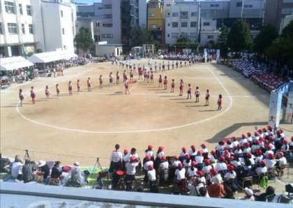 ランチタイムはご家族特製のおいしそうなお弁当をしっかり食べ、応援合戦では、赤組、白組ともに「ファイト!」の元気な声が運動場いっぱいに響きました。