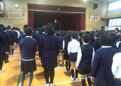 区長様はじめ、区役所の皆様が朝から校門に立ち、校長先生ともに「おはようございます。」と子どもたちを出迎えてくださいました。その後、講堂で全校児童の前に立ち、日々の生活や学習を志を持ってしっかりと行っていくことや、区のギネス記録挑戦の取り組みなどについてお話してくださいました。区長様、区役所のみなさま、朝早くからどうもありがとうございました。