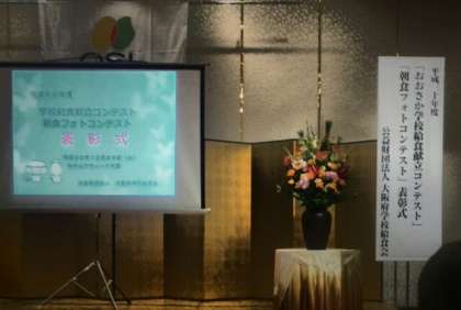 本日アウィーナ大阪で行われた食育講演会の場で授賞式があり、本校児童のこの作品が府下の食育関係者の前で披露されました!おめでとうございます。6年生からチャレンジした5名のみなさんも夏の暑い中、クーラーのない家庭科室で何日もよくがんばって試作しました。冬休み、行事が多いときですから、家でもいろいろチャレンジしてください!