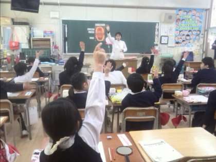 歯科の学校医の先生や歯科衛生士の先生方が来校され、2年生の教室で歯みがき指導をしてくださいました。
