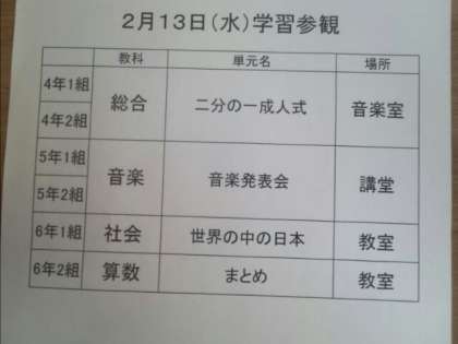 5時間目13時40分から授業参観、そのあと懇談会です。子どもたちのがんばりを見てあげていただきますようお願いいたします。