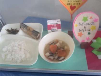遅れてもがんばってきれいに食べ、調理員さんに「とってもおいしかったです。ごちそうさまでした。(食器を返すのが)おそくなってごめんなさい。」ときちんとごあいさつする1年生の児童がいました!見ると身をすべてきれいに平らげ、ピカピカの骨だけ残っていて、「こんなにきれいに食べてすごいね。ごあいさつもすばらしいです。時間内に食べられるようになれば、はなまるです!がんばったね。」と栄養教諭からほめてもらいました。