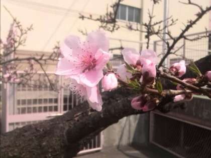 ソメイヨシノはあと少しですが、アンズの花や桃の花、白い桜の花は開花しています!校庭が一気に春らしくなり、新しい1年生や進級する子どもたちを待ちわびているようです。