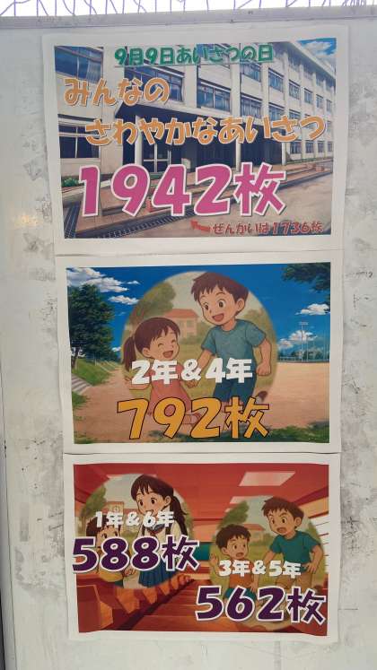 昨日の「あいさつの日」の結果です。なんとみんなのさわやかなあいさつのシールゲットは1942枚にもなりました。