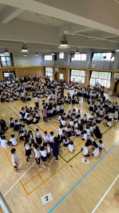 10月16日(木)今朝の児童集会 ついに、お知らせが!!