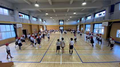 15分休み、運動委員会の5・6年生がドッジボールをする時間を催してくれました。今日は、3・4年生の「ドッジやりたい!」というメンバーが講堂に集まりました。