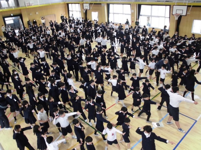 児童集会で、2週に渡って、「シナプソロジー」をしました。