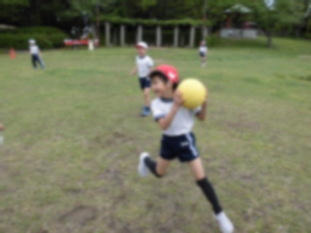 子どもたちはまず、芝生の広場に行き、自分たちで話し合って決めた遊びをしました。なわとびやだるまさんがころんだなどをして遊びました。