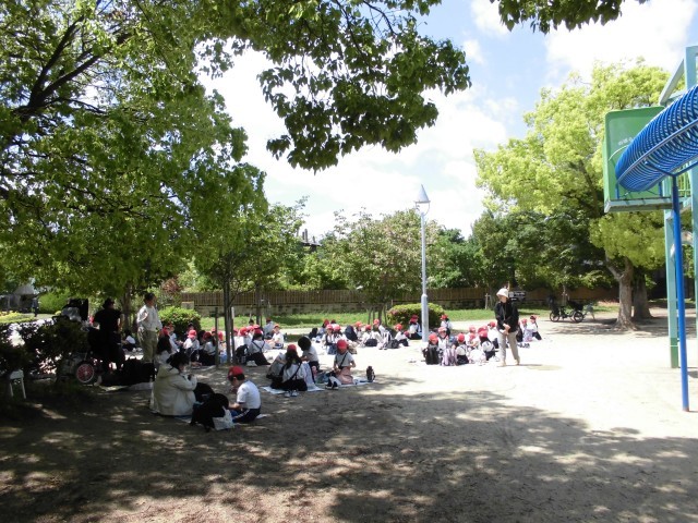 大阪城公園でお弁当を食べました。みんなおいしくいただきました。ハルカスに上る前から「おなかすいた・・・」という声は聞こえていました。