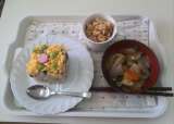 今日は野菜が8種、わかめや小魚などの材料が全部で20種類ほどもとれるメニュー「...