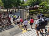 暴風警報を想定した避難訓練がありました。子どもたちは地区別に分かれてリーダーの...