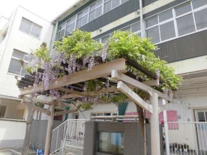 運動場にある、藤の花が今年はきれいに咲いていました。