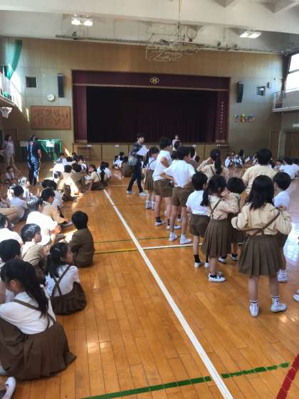 たてわり編成がありました。6年生が下級生の手を引いて優しくリードしていました。