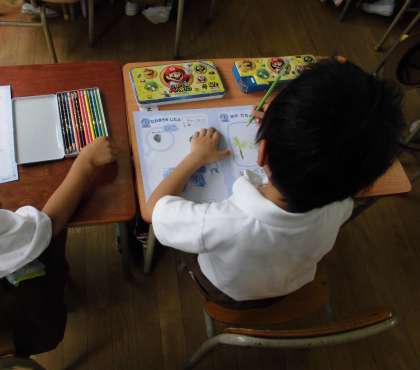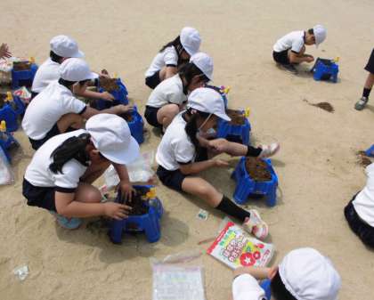 芽の様子をよく見て、生活科のカードに絵をかきました。