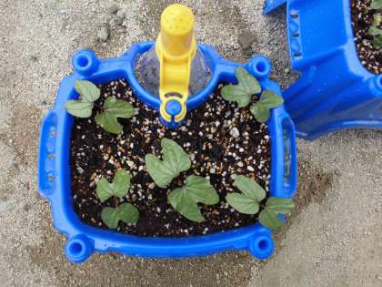 ゴールデンウィーク明けに種をまいた、あさがおの芽がでました。