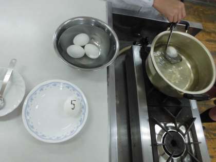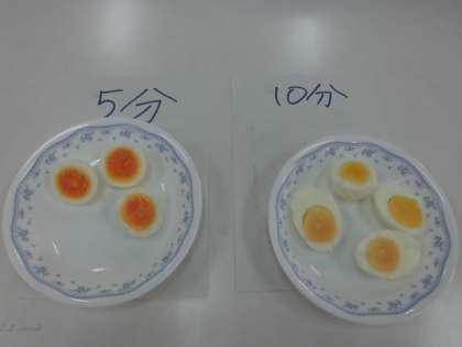 5分間と10分間の中身を比べると、「色が違う」「硬さが違う」など、しっかりと違いを見つけることができていました。