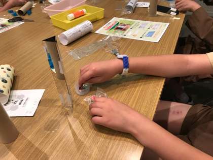 ビーズやスパンコールを選んで、どんな風に見えるか楽しみながら作業しています。