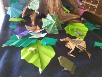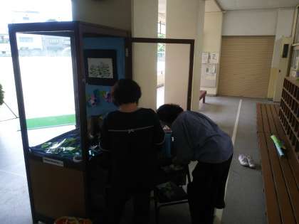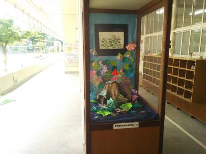 玄関入ったところに「生涯学習ルーム」のガラスケースがあります。生涯学習推進委員の方々が、季節を感じられる作品を展示してくださっています。作成から展示まで、本当にありがとうございます。