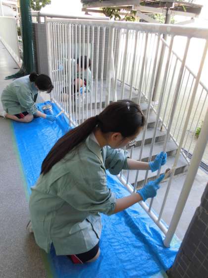 主に管理作業員さんのお手伝いを中心に、ペンキをぬったり、電動のこぎりを使ったりと、初めての経験に緊張していました。でも仕上がりはとてもきれいでした。