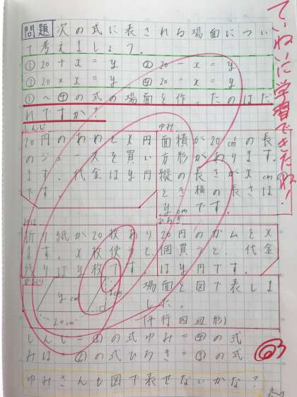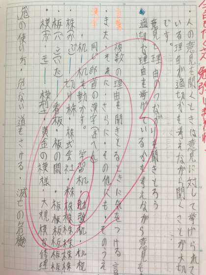 毎日の宿題で自主学習に取り組んでいます。ノートにまとめて、整理しながら書きます。なかには、3〜6ページ頑張る子もいます。