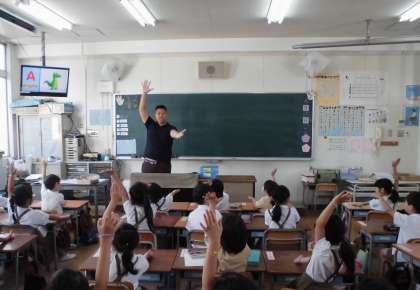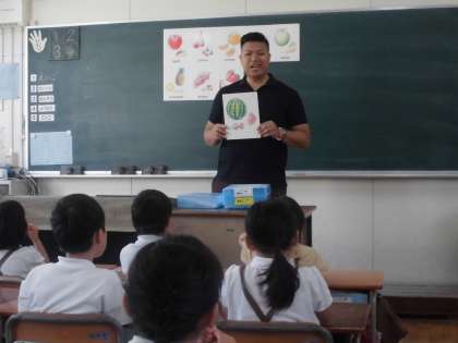 あいさつ、数字や色、果物の名前などを教えてもらいました。