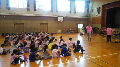 ゴスペルを歌ったり英語の歌遊びをしています。みんなの歌声が響き、笑顔もいっぱいです!