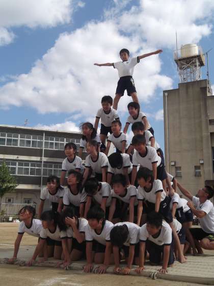 台風のため、日曜日の運動会が延期になりましたが、今日は最高のお天気になりました。待ちに待った運動会に、どの子も力いっぱいの演技ができました。