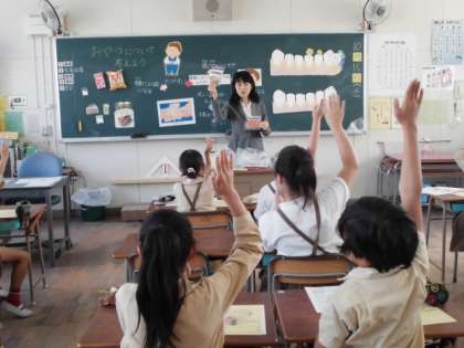 西九条小学校の栄養士小野先生は、四貫島小学校の子ども達に、定期的に栄養指導をしてくださっています。