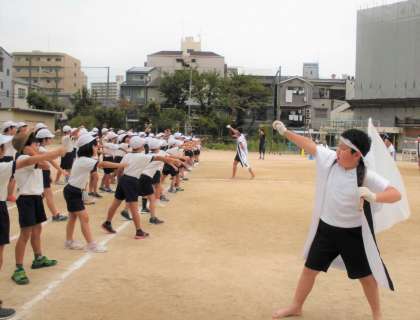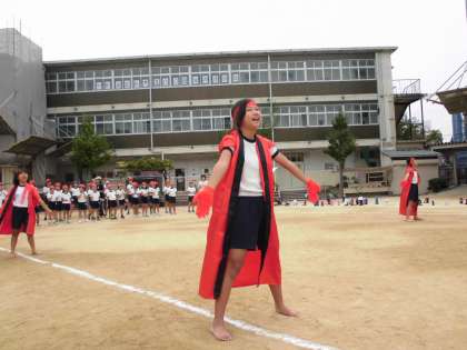 10月6日(日)の運動会に向け、今日は最後の全体練習日です。赤白に分かれて、応援合戦を行いました。