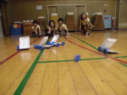 生活科の学習で作ってきたおもちゃ、ついに体育館で思いっきり遊びました!