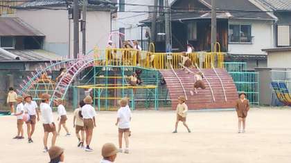 昼休み、元気な声が運動場から聞こえてきました!鬼ごっこ、ボールあて、四貫島タワー遊びなどなど、思い切り体を動かす子どもたちの姿がありました。