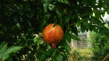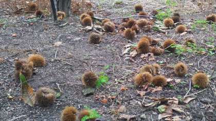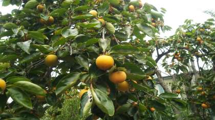 季節ごとにさまざまな顔を見せてくれる「四貫島の森」が、今、実りの秋を迎えました!上から、柿(かき)、石榴(ざくろ)、栗(くり)です。どれも秋を感じさせてくれますね。四貫島の森は、子どもたちだけでは入れない約束ですので、先生と一緒にまた観察してみてくださいね。